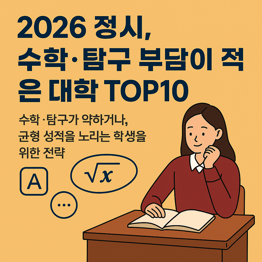 오늘은 2026학년도 정시 기준으로 수학·탐구 부담이 비교적 낮은 인문계 중심 대학 10곳을 소개해드립니다.