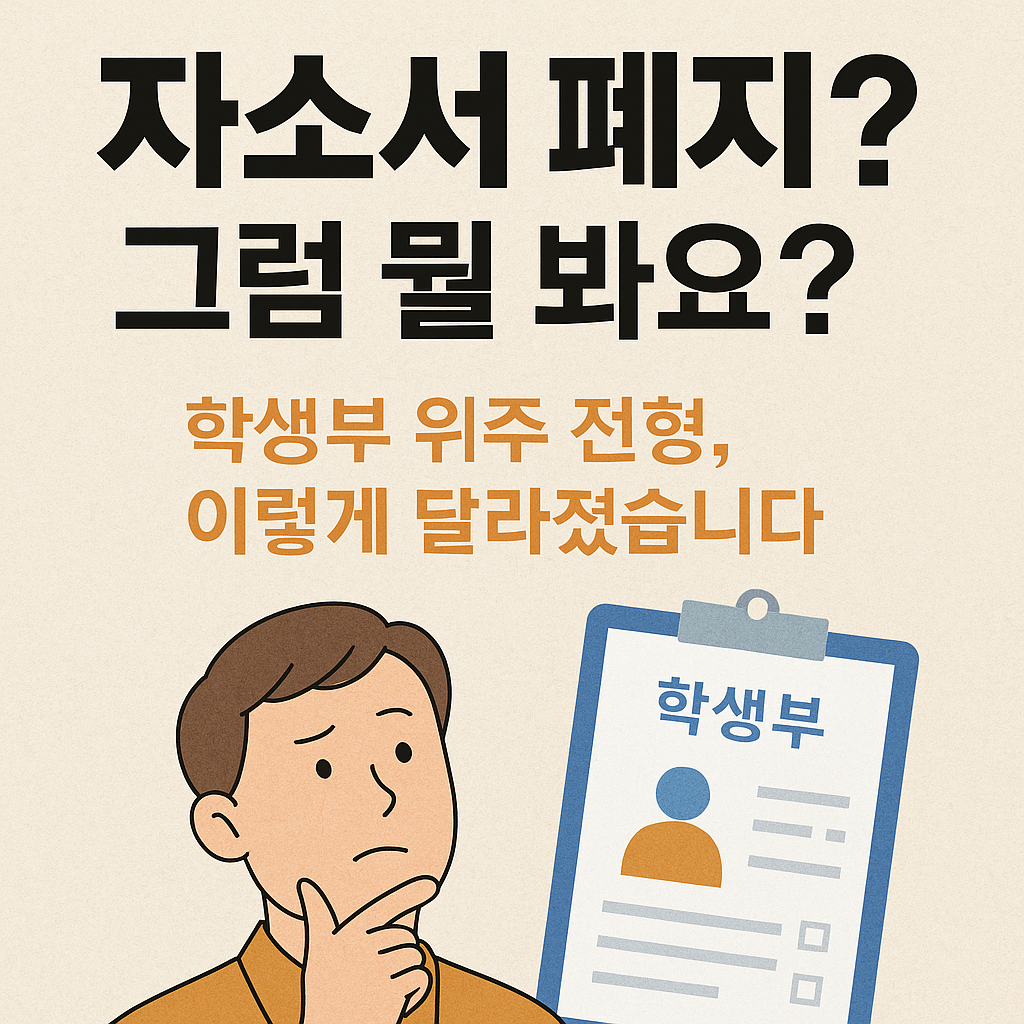 2024학년도부터 자기소개서가 공식적으로 폐지되었고, 2025학년도 이후부터는 학생부 중심 전형이 새롭게 재정비되는 상황입니다.